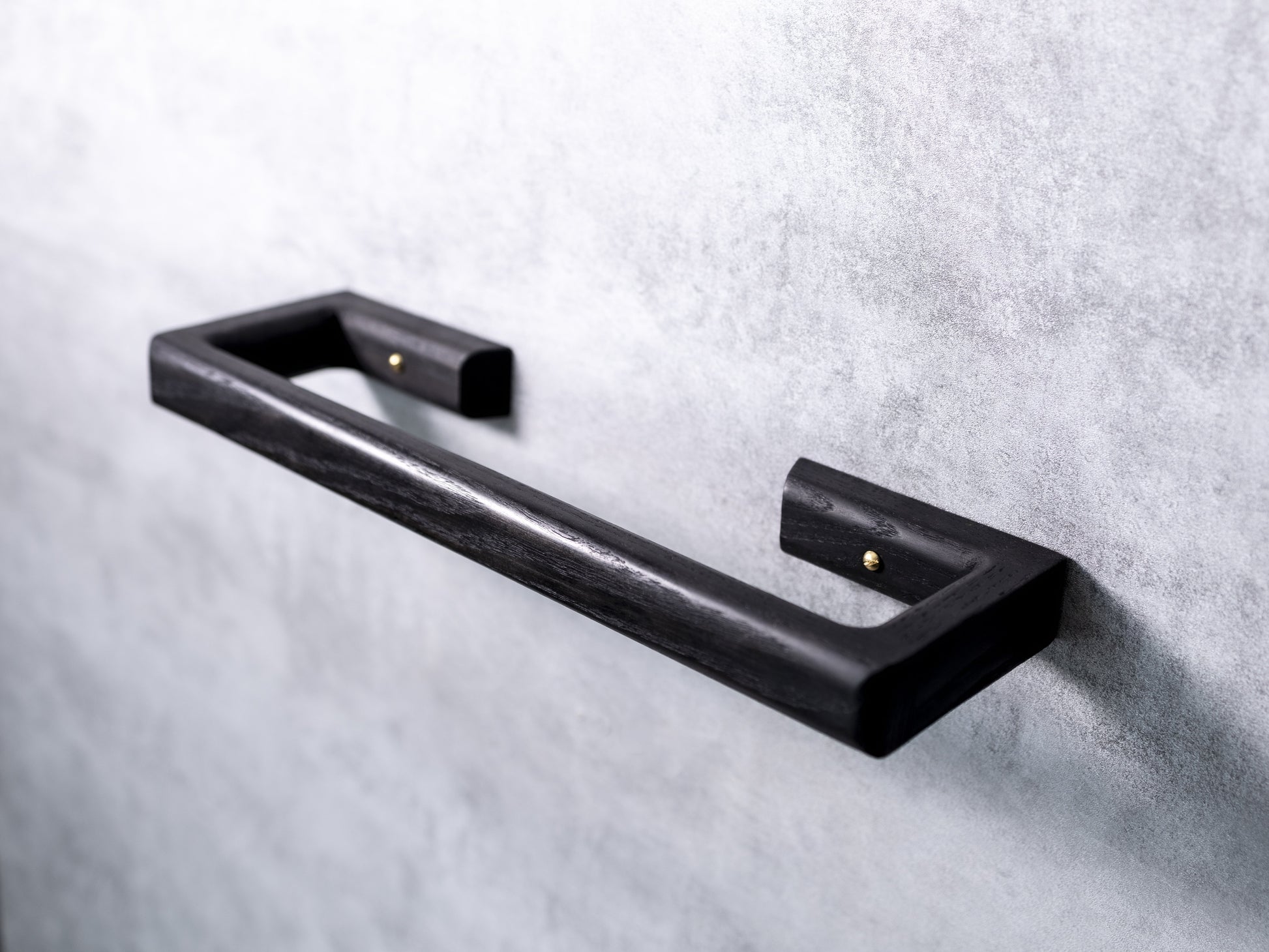 - Intense Black Ash Towel Rail that looks elegant and clean, with its super strong mortise and tenon joints.